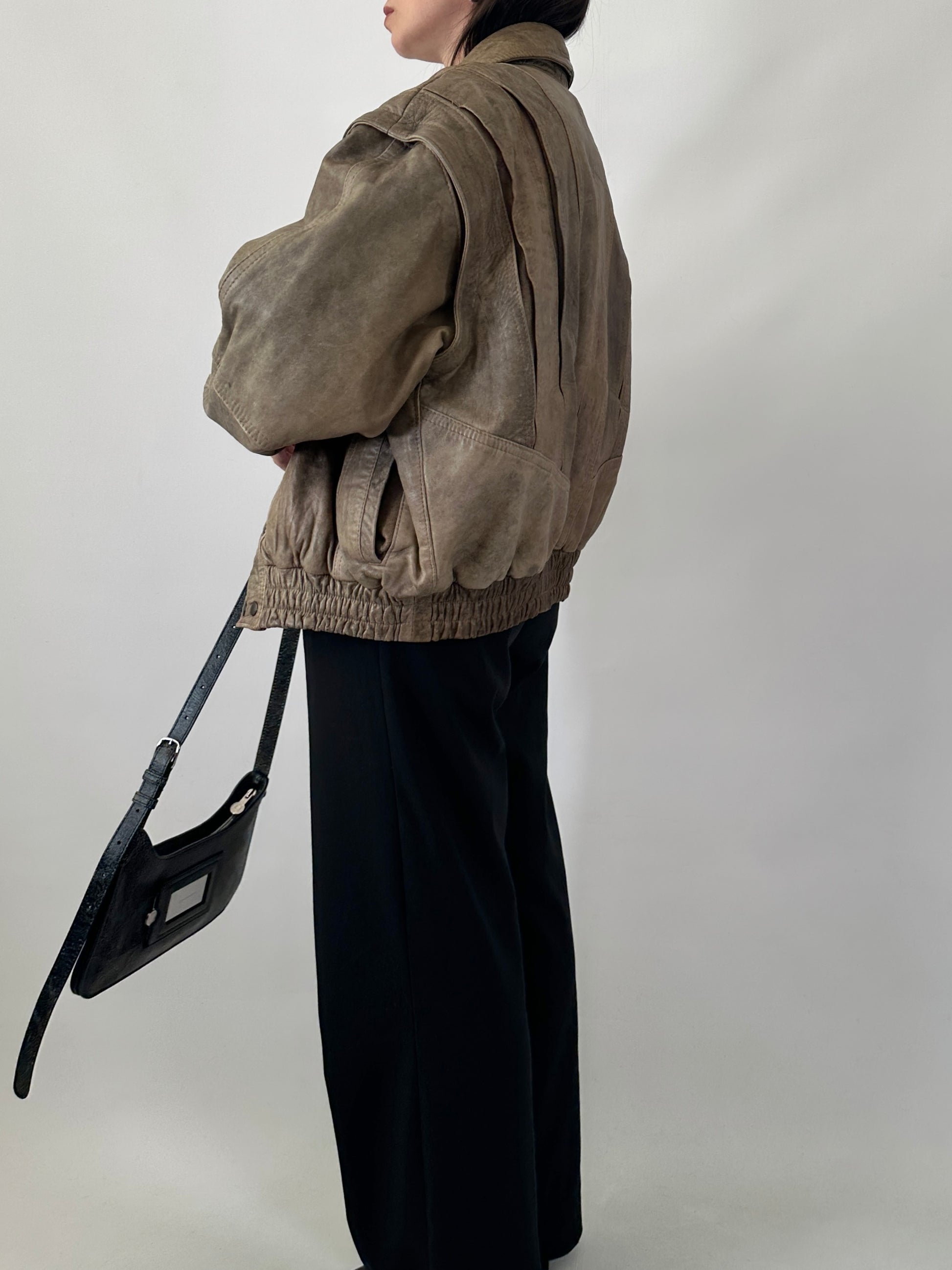 80s bomber jacket in distressed leather