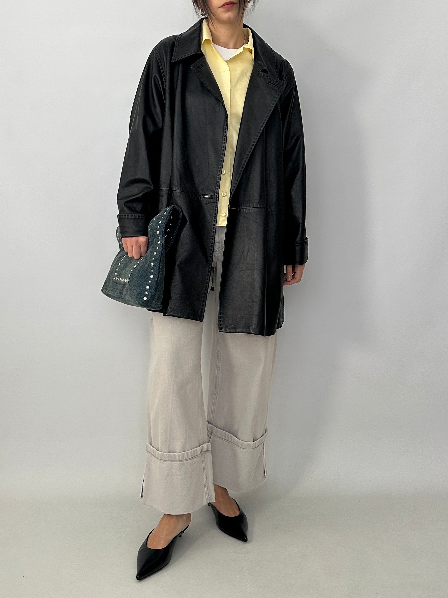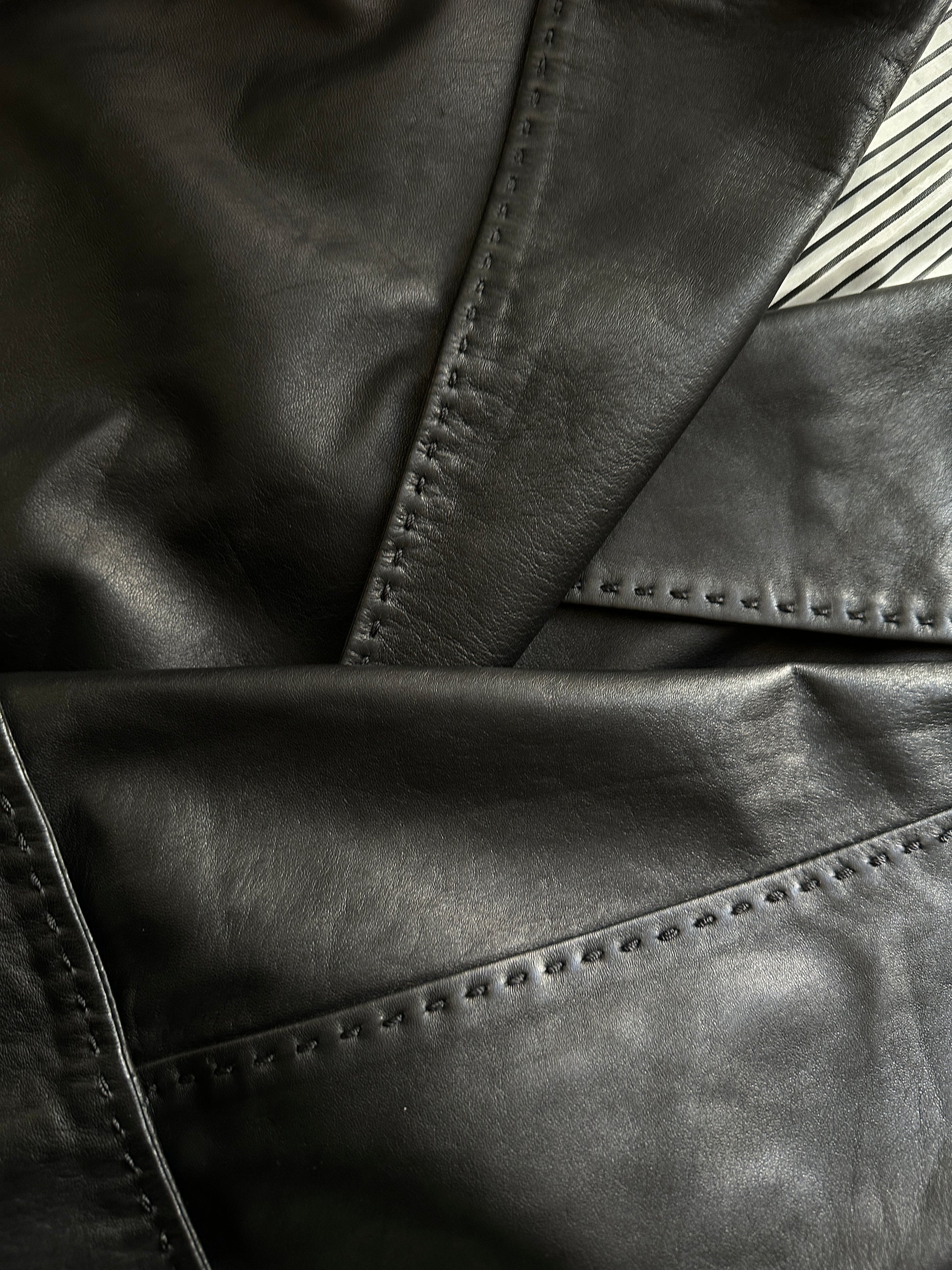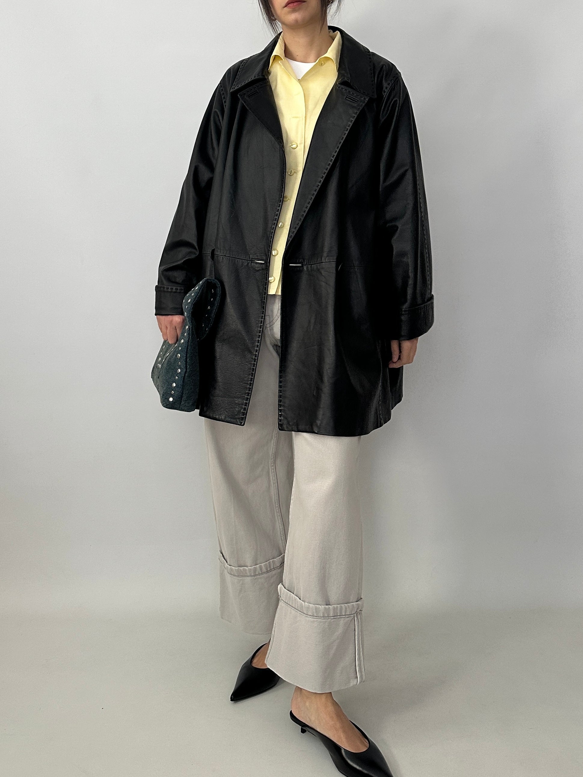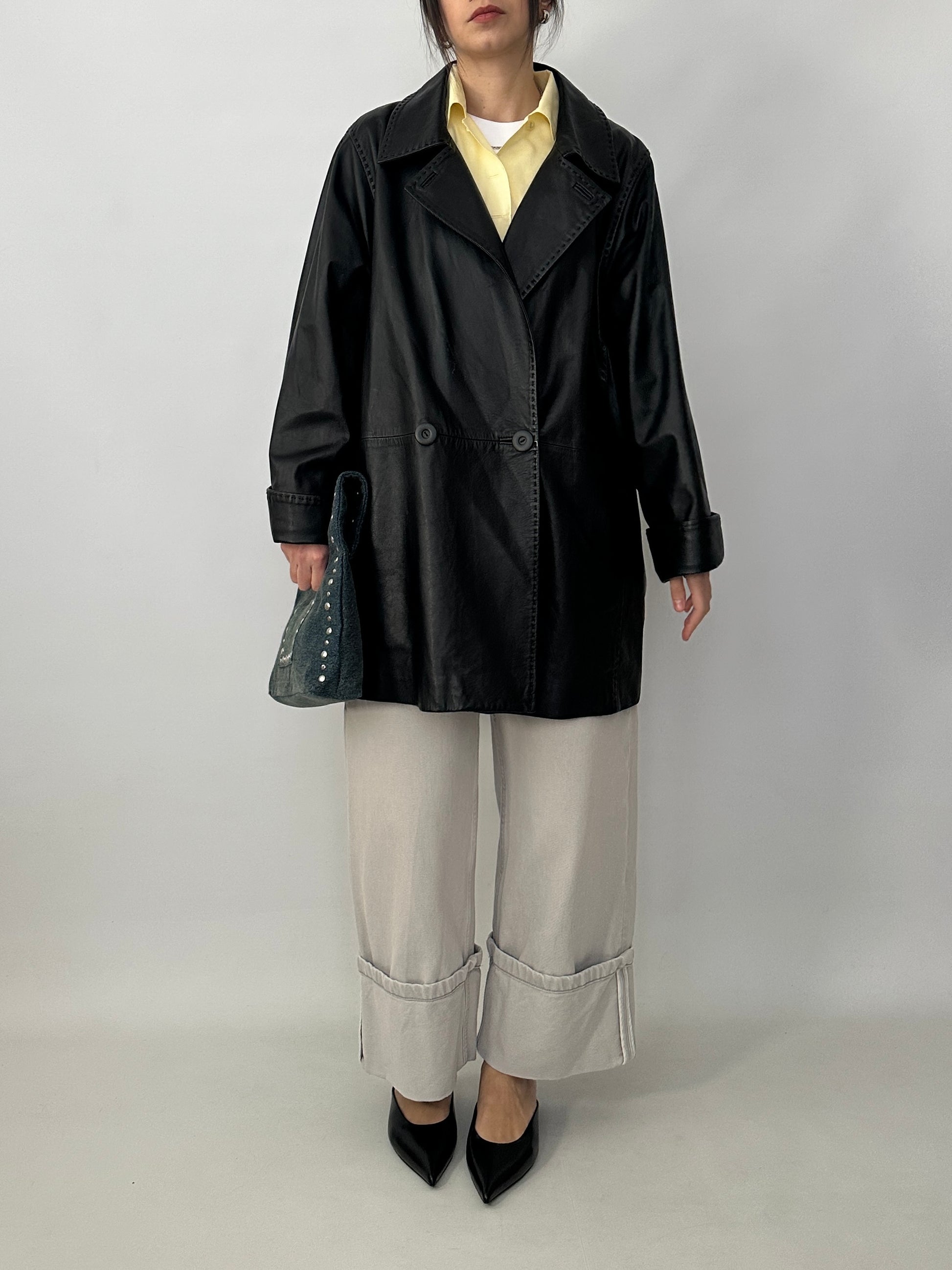 Meravigliosa giacca tipo caban in morbidissima nappa. Doppiopetto, rever classico, risvolto sulla manica. Bellissime le impunture lungo tutti i profili.