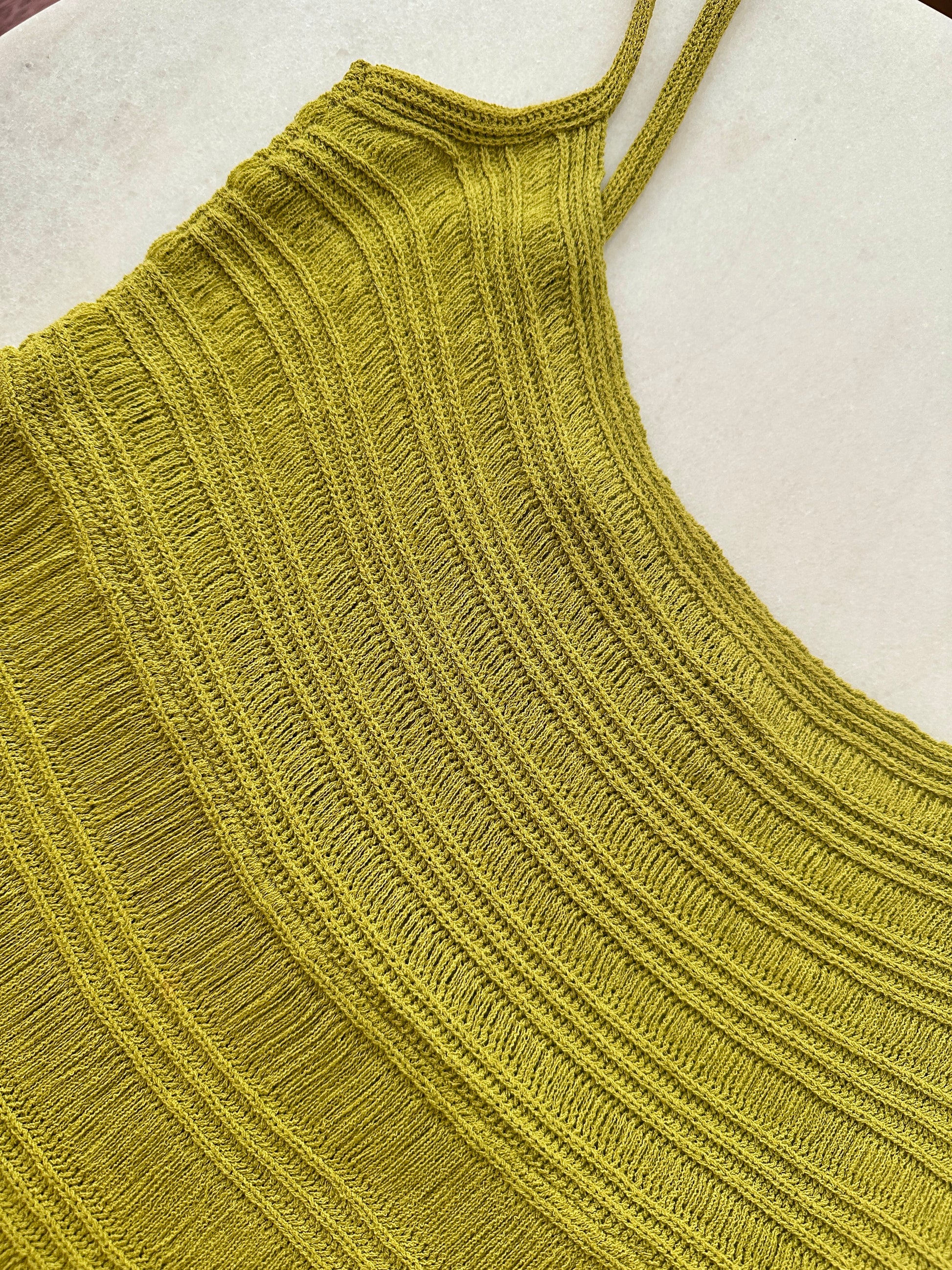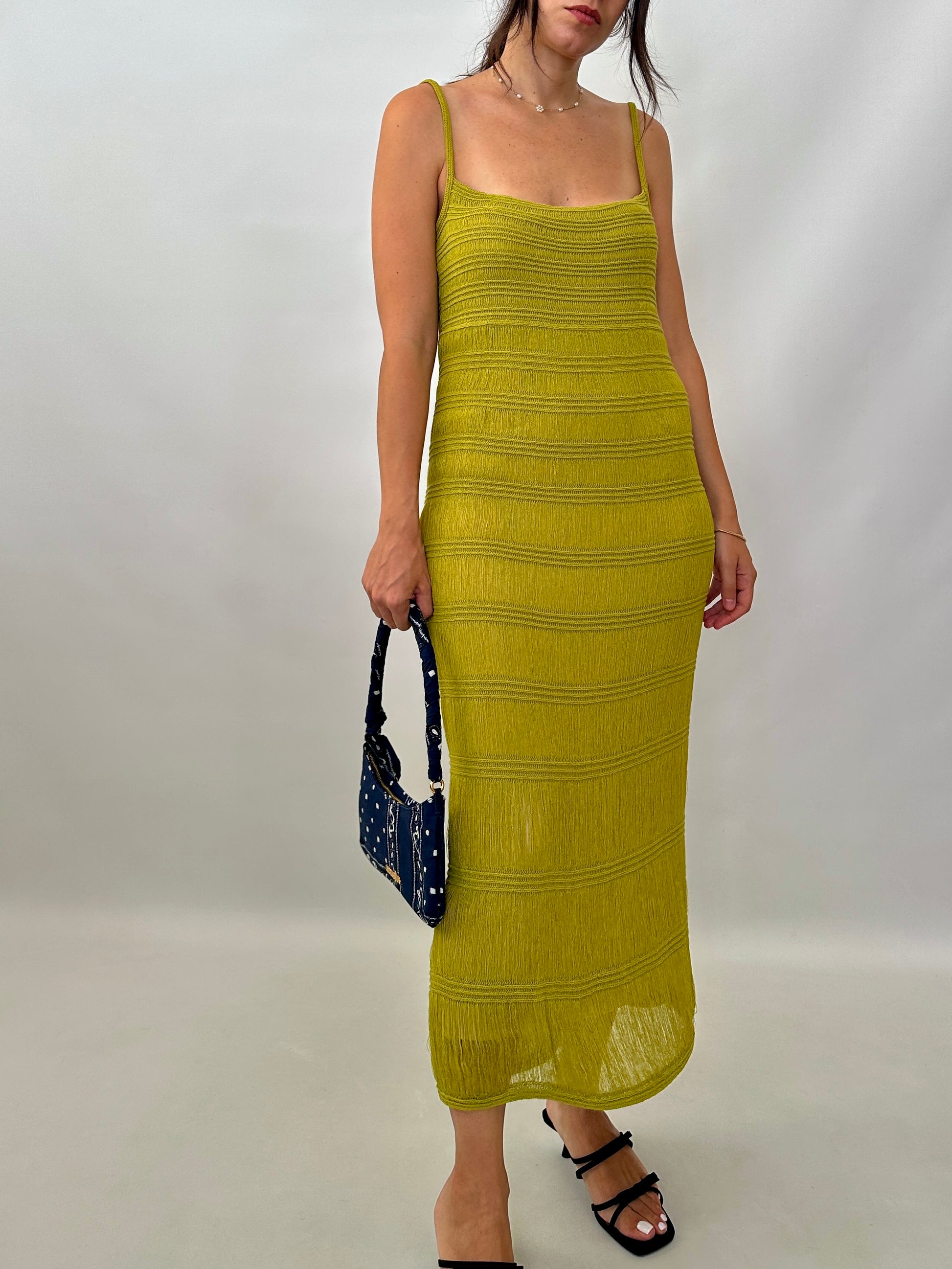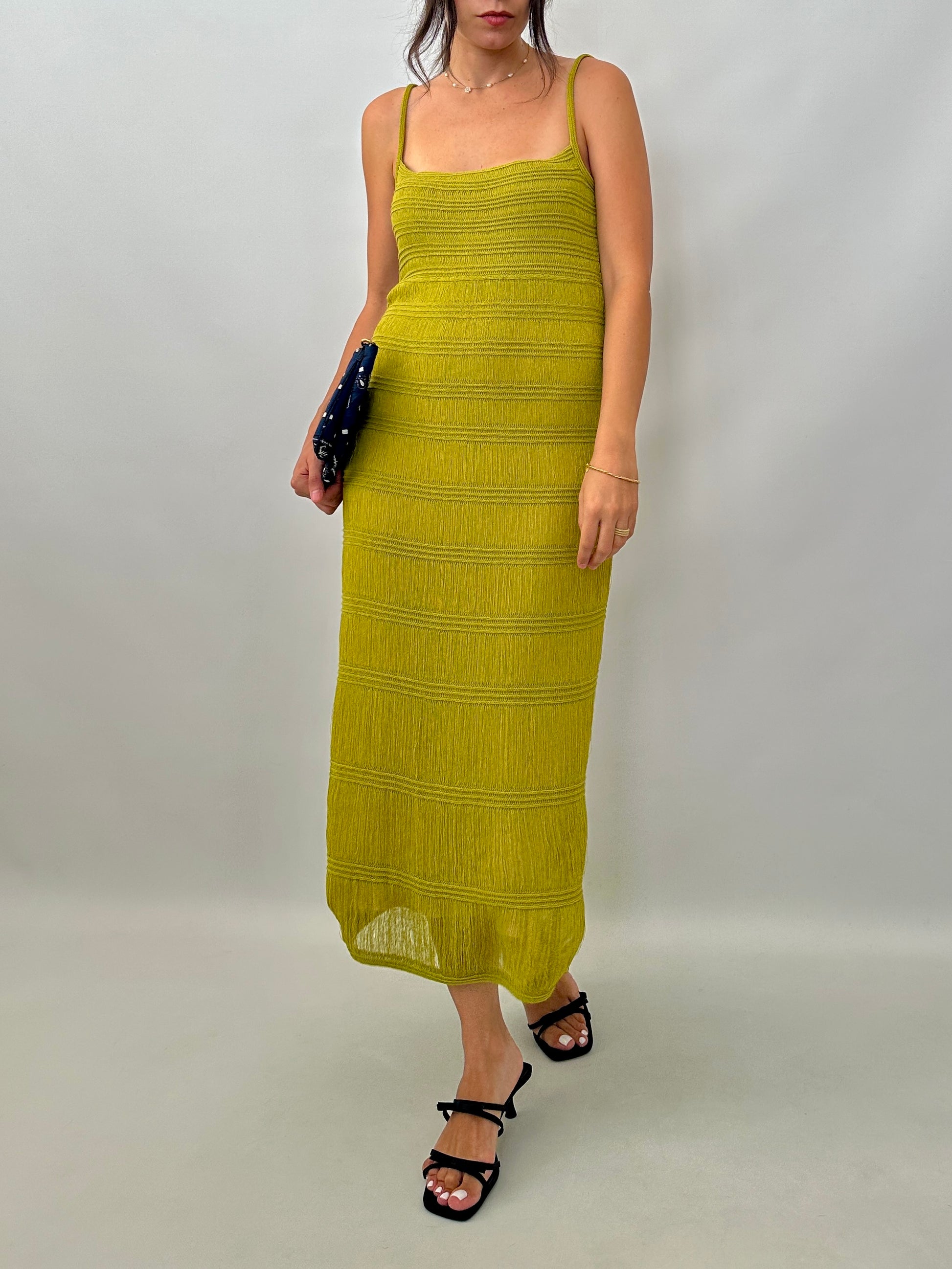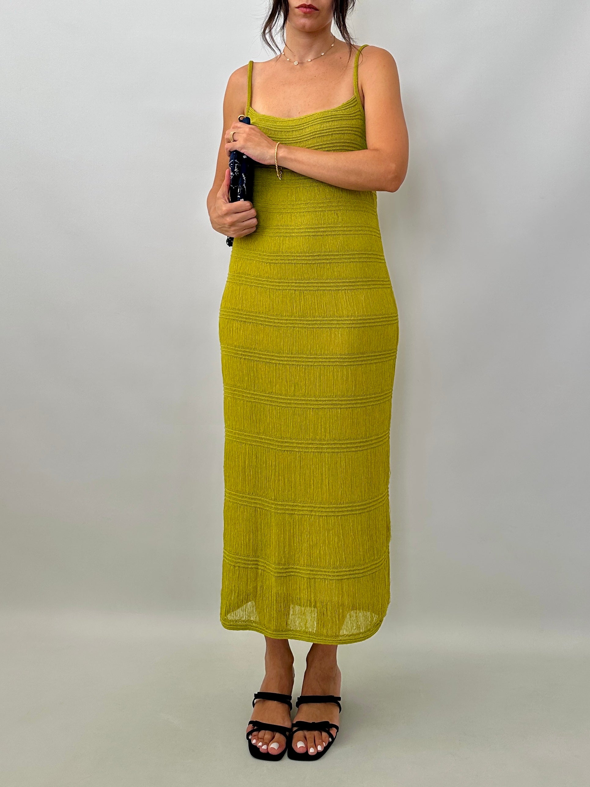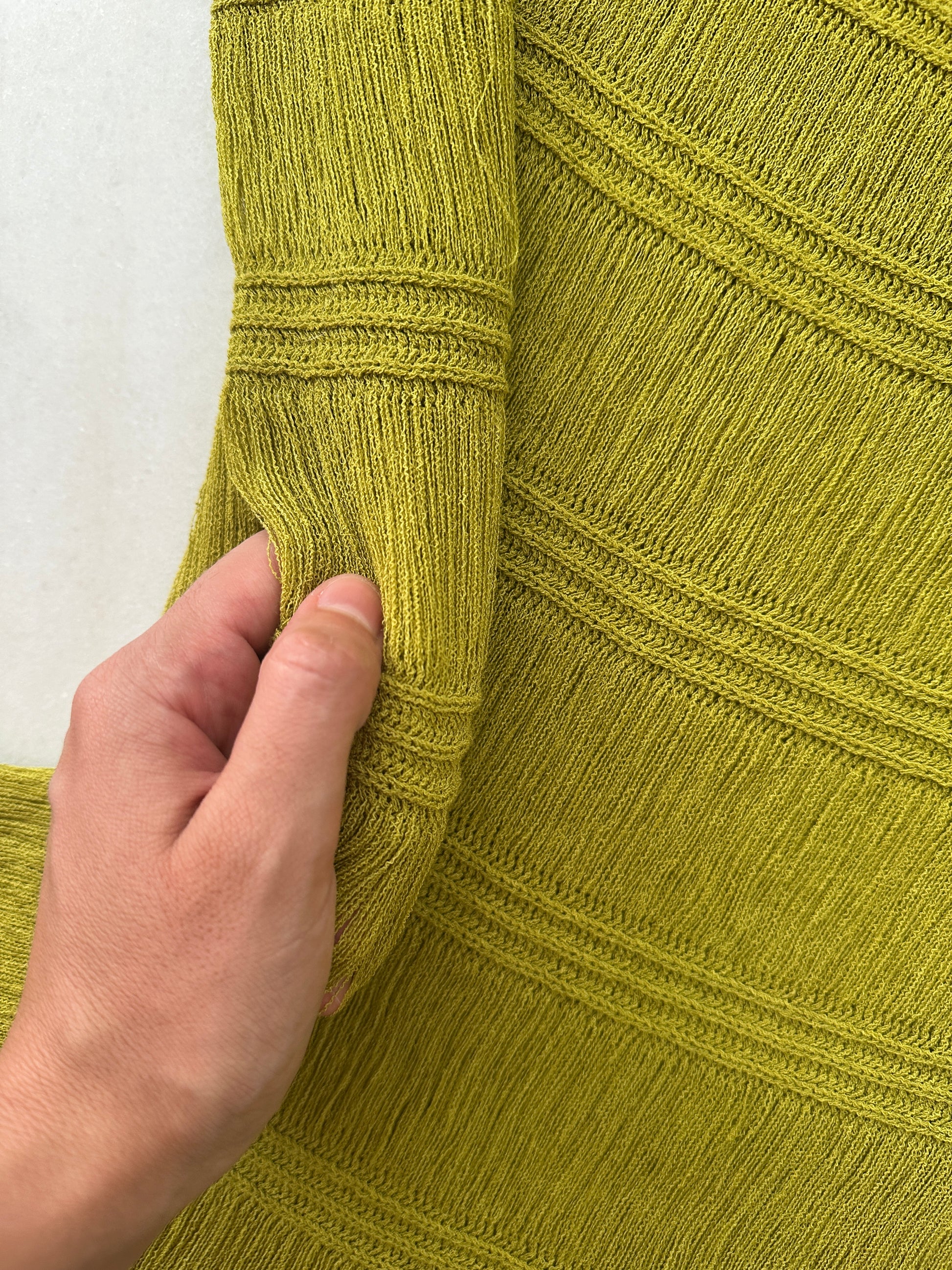 Fit tubolare che accompagna le forme. Colore verde chartreuse.