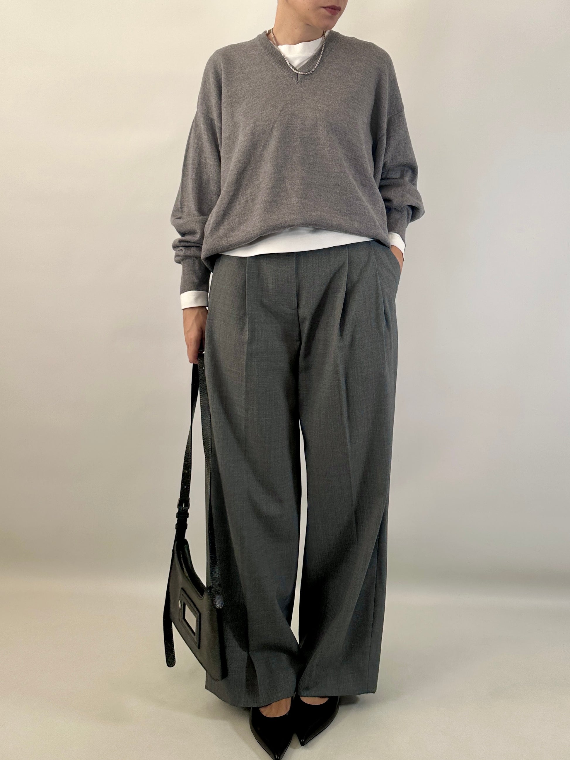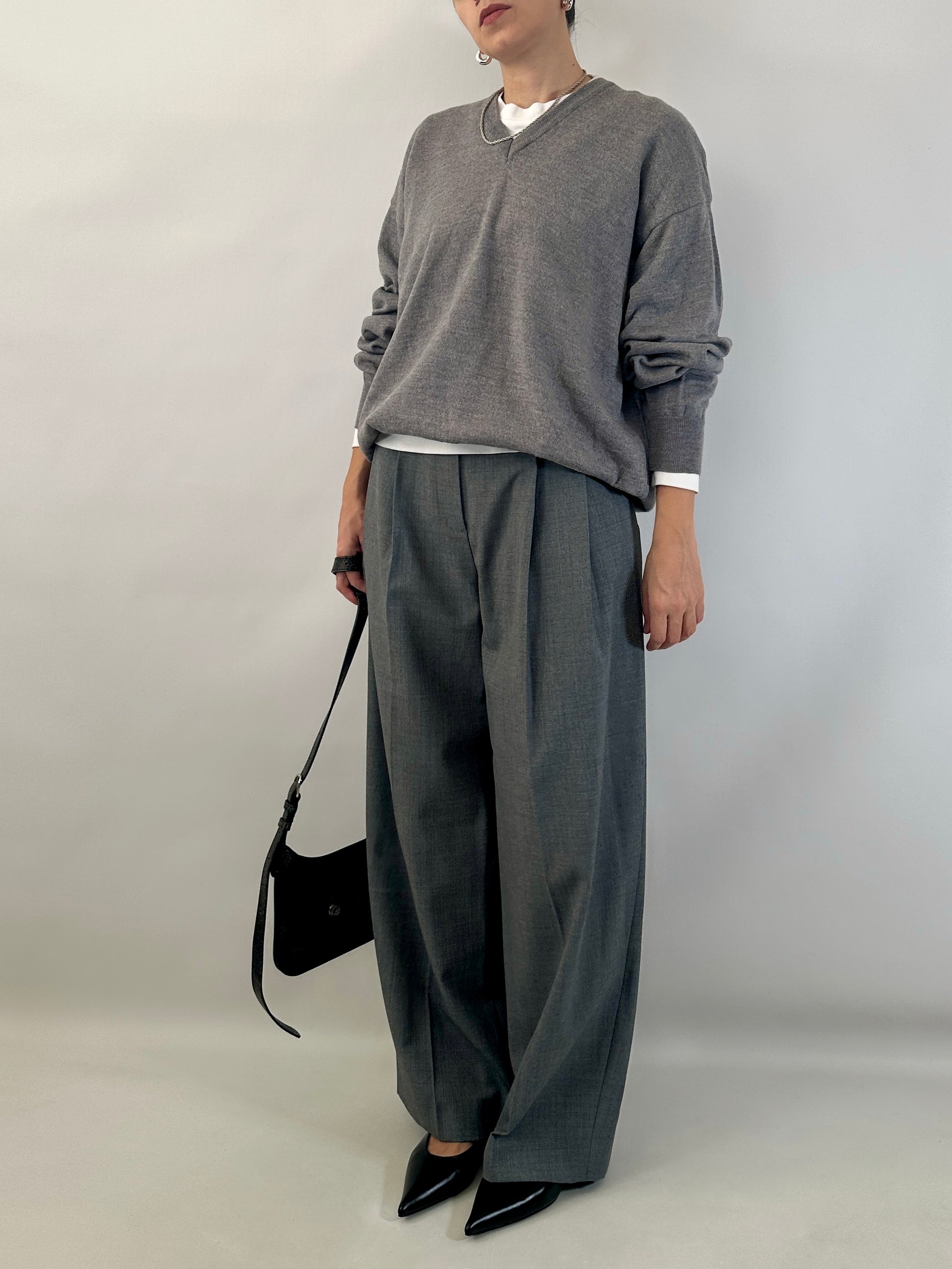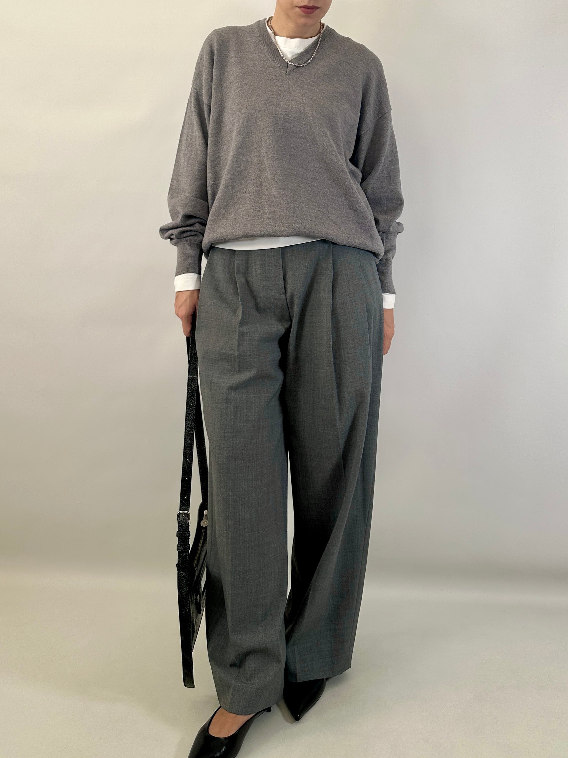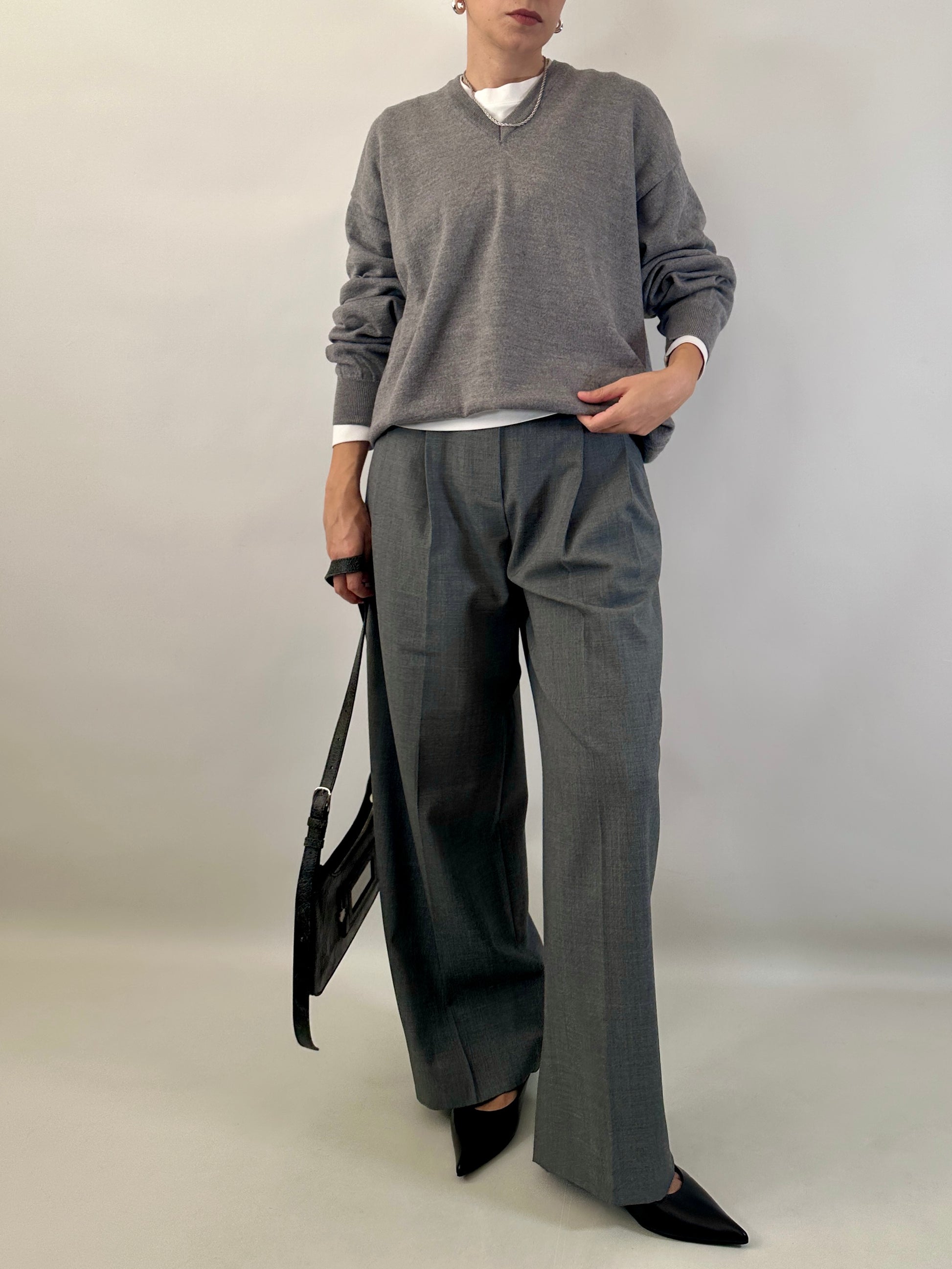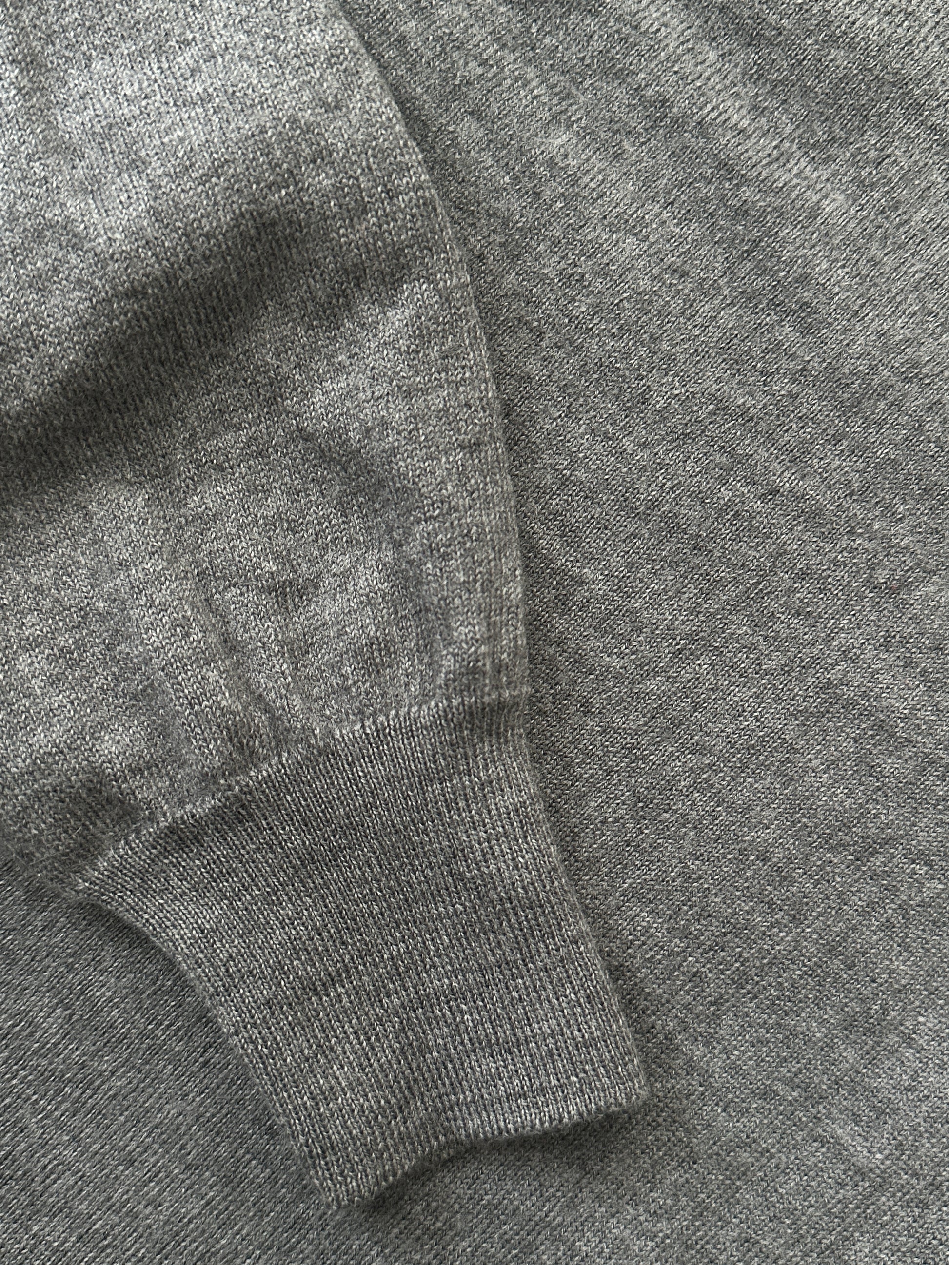 Pullover vintage Sergio Tacchini in sofficissima pura lana vergine. Peso medio/leggero. Scollo a V, polsini e fondo a costine. Colore grigio chiaro. Nasce da uomo, perfetto oversize su donna.