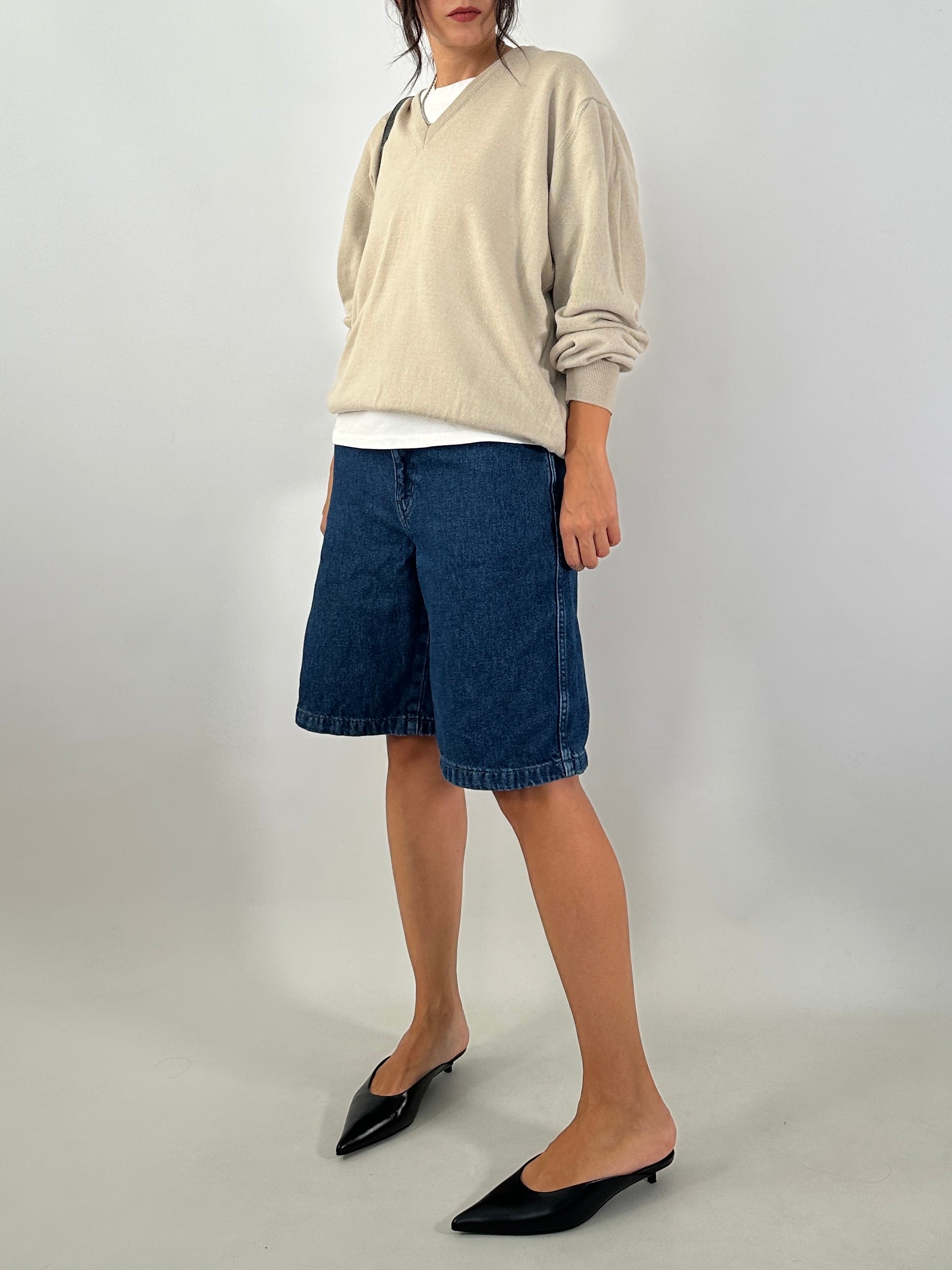 Pullover in maglia fine, scollo a V, fit rilassato, oversize, con spalle scese e maniche lunghe.