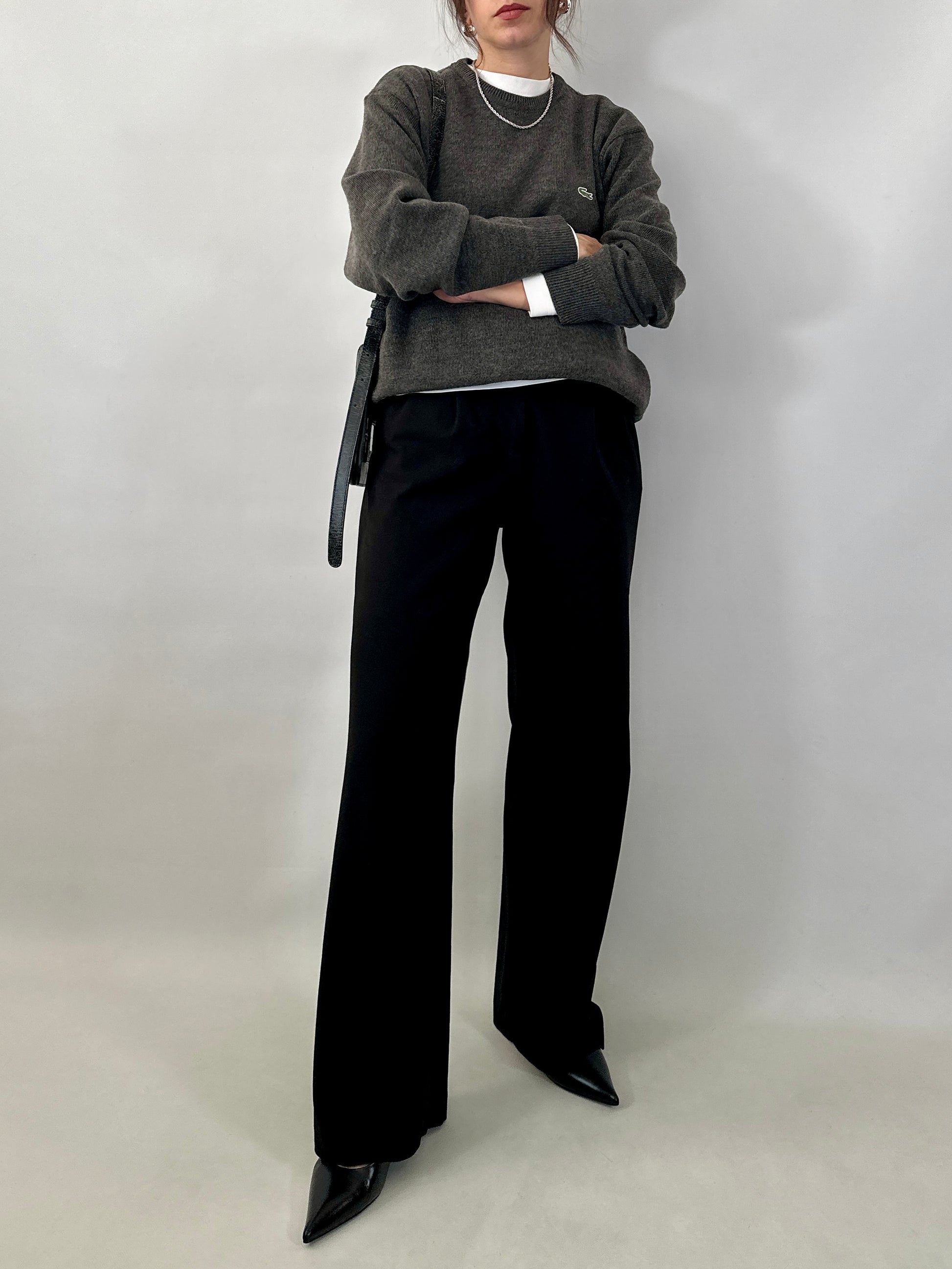 Pullover firmato Lacoste, colore grigio scuro. Girocollo, logo sul petto.