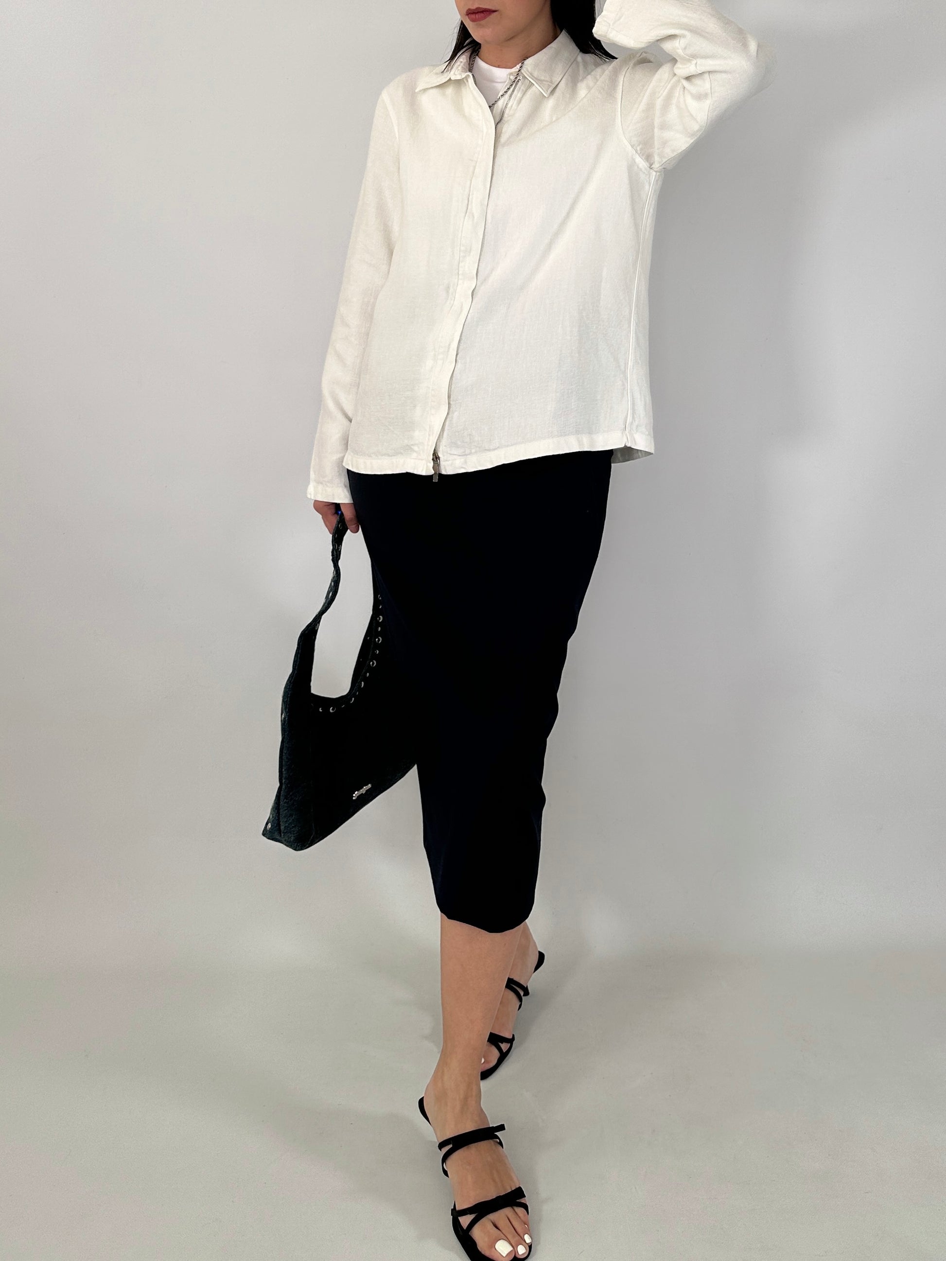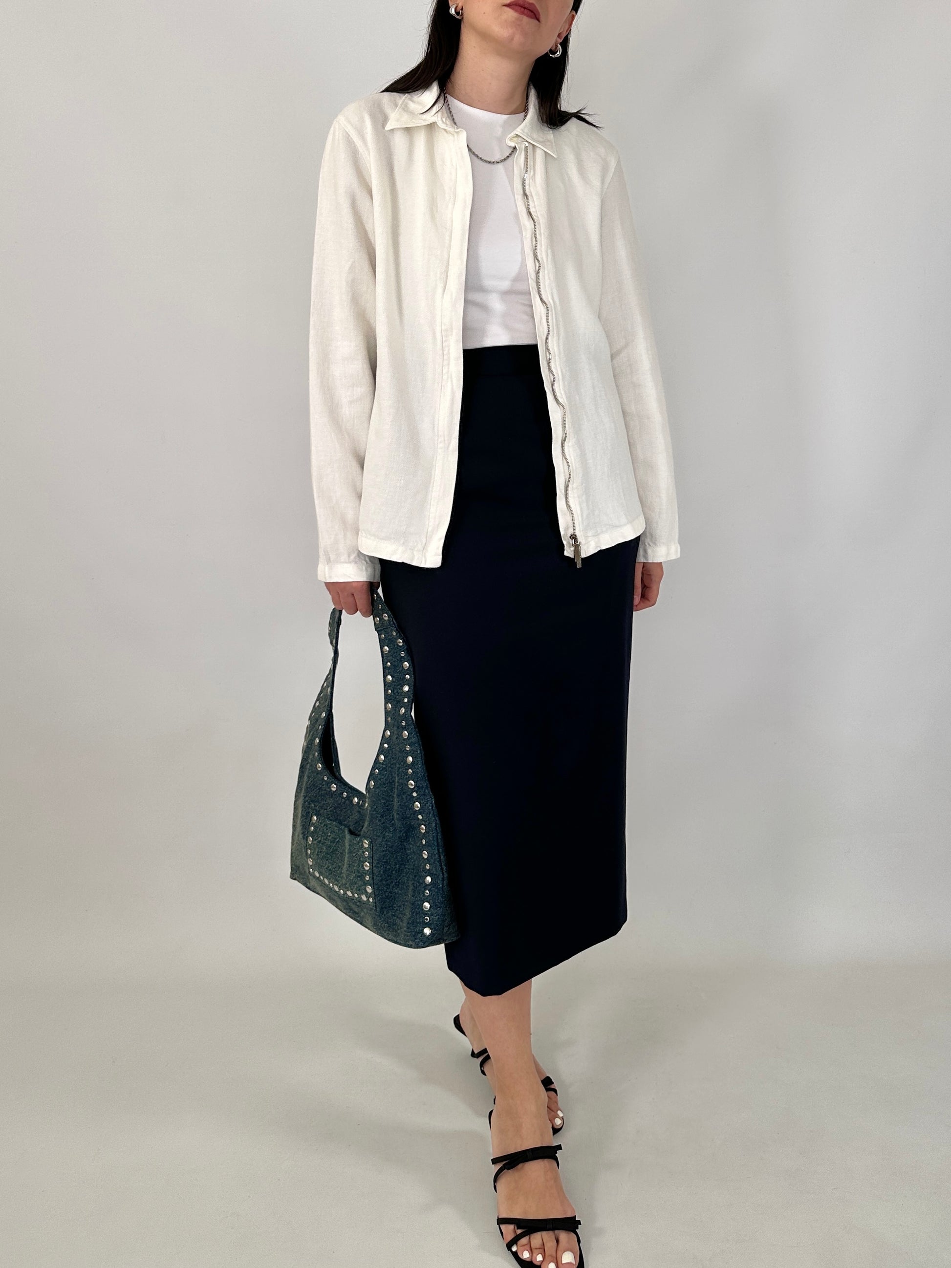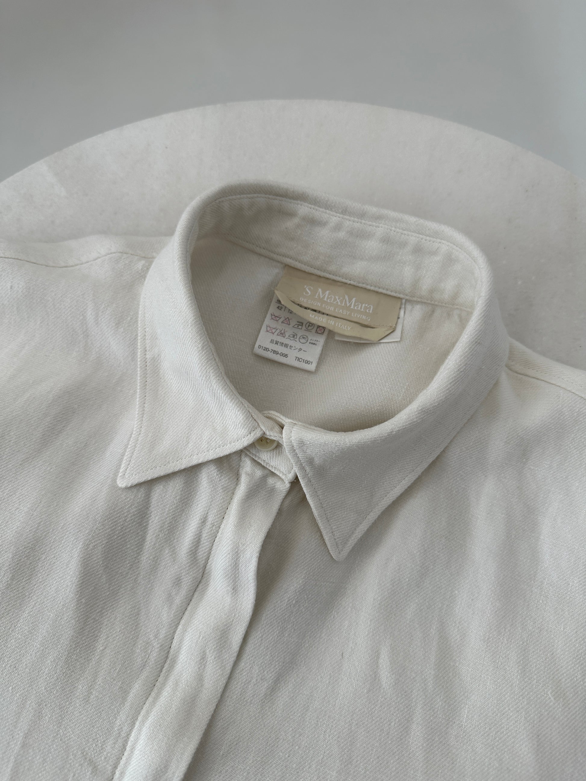 Giacca leggera S Max Mara in puro lino bianco. Colletto classico, zip centrale con doppio cursore, sfoderata. Vestibilità dritta.