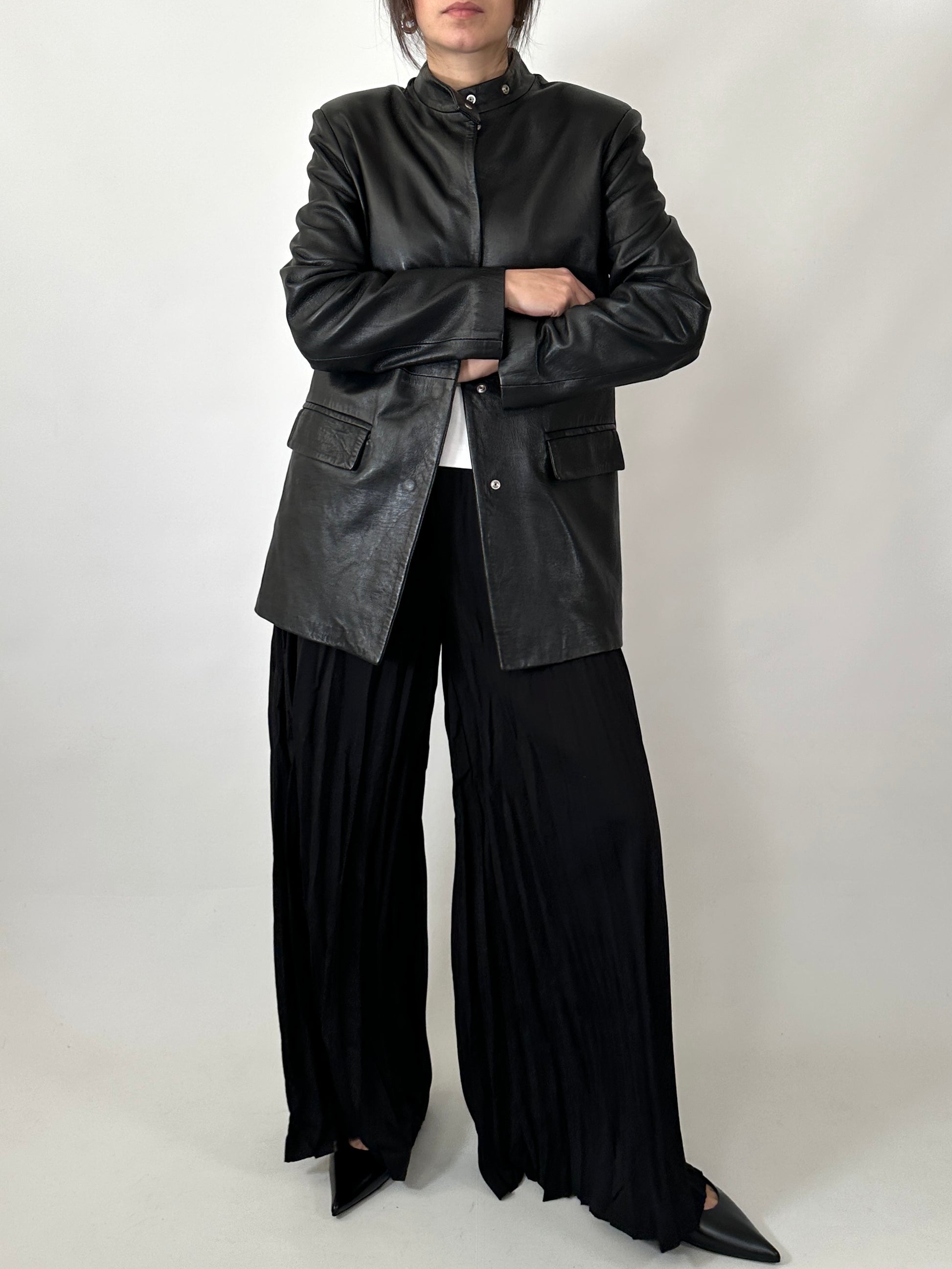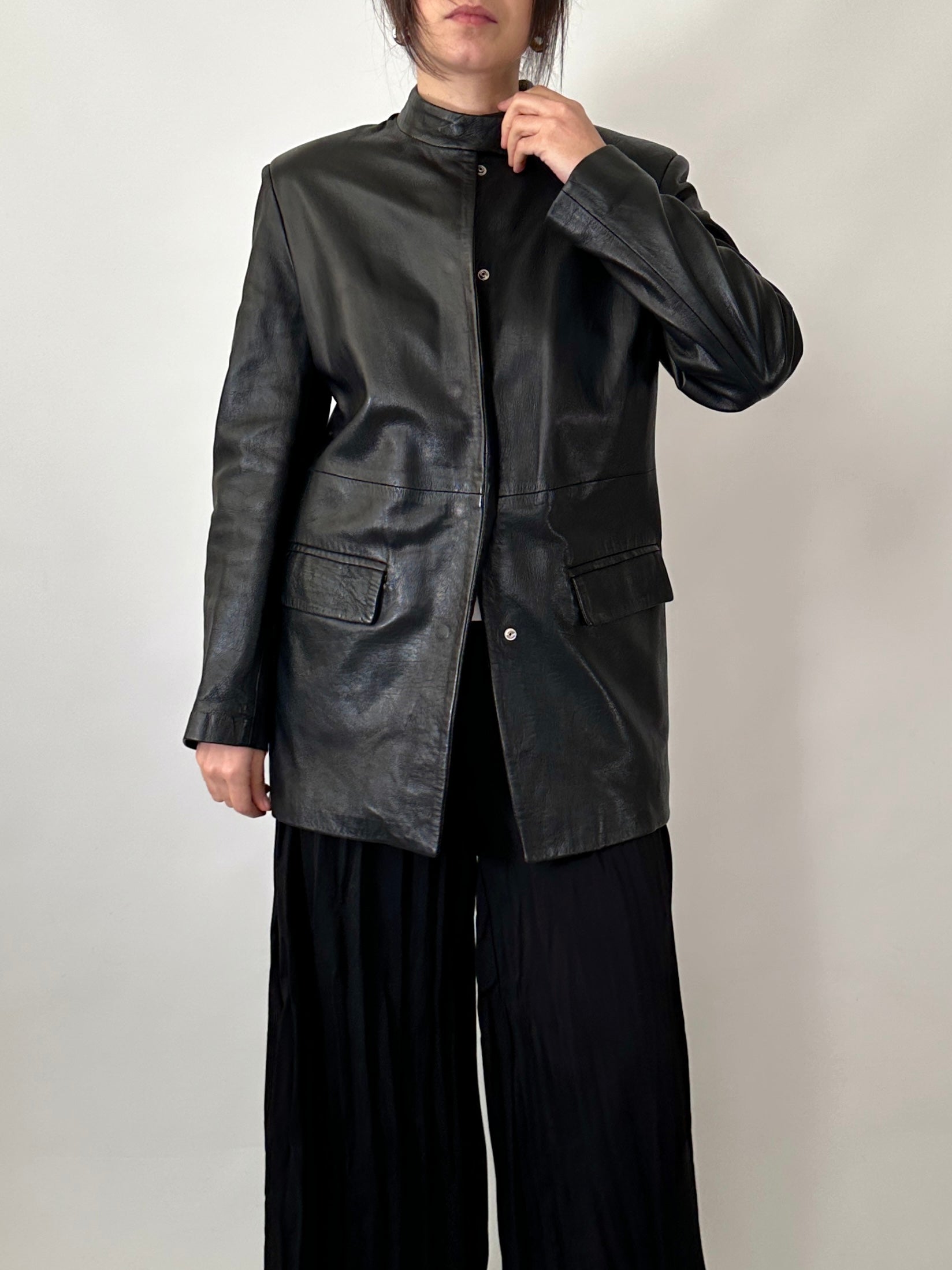 Giacca vintage 90s in morbidissima vera pelle dalla linea pulita ed essenziale.