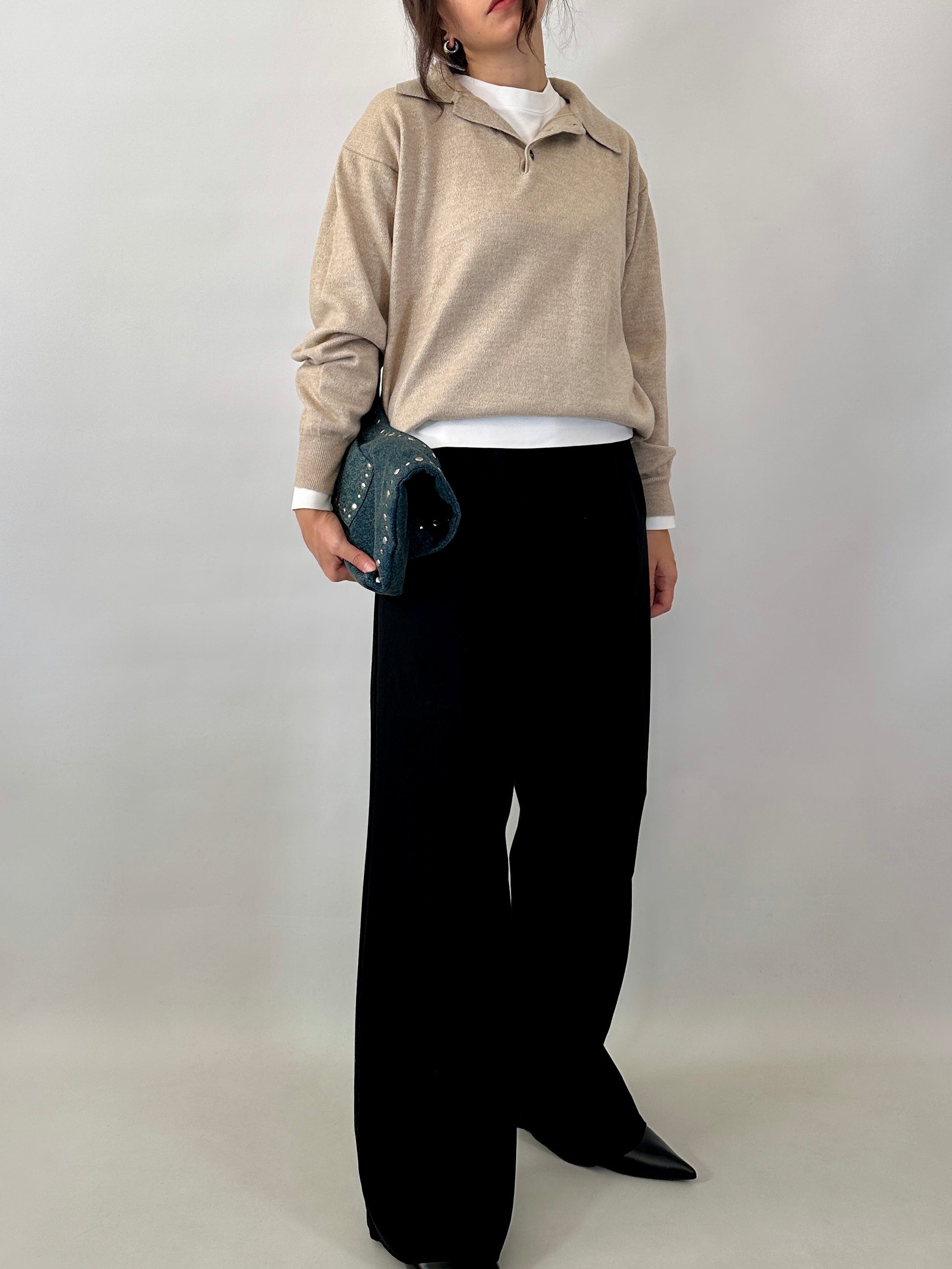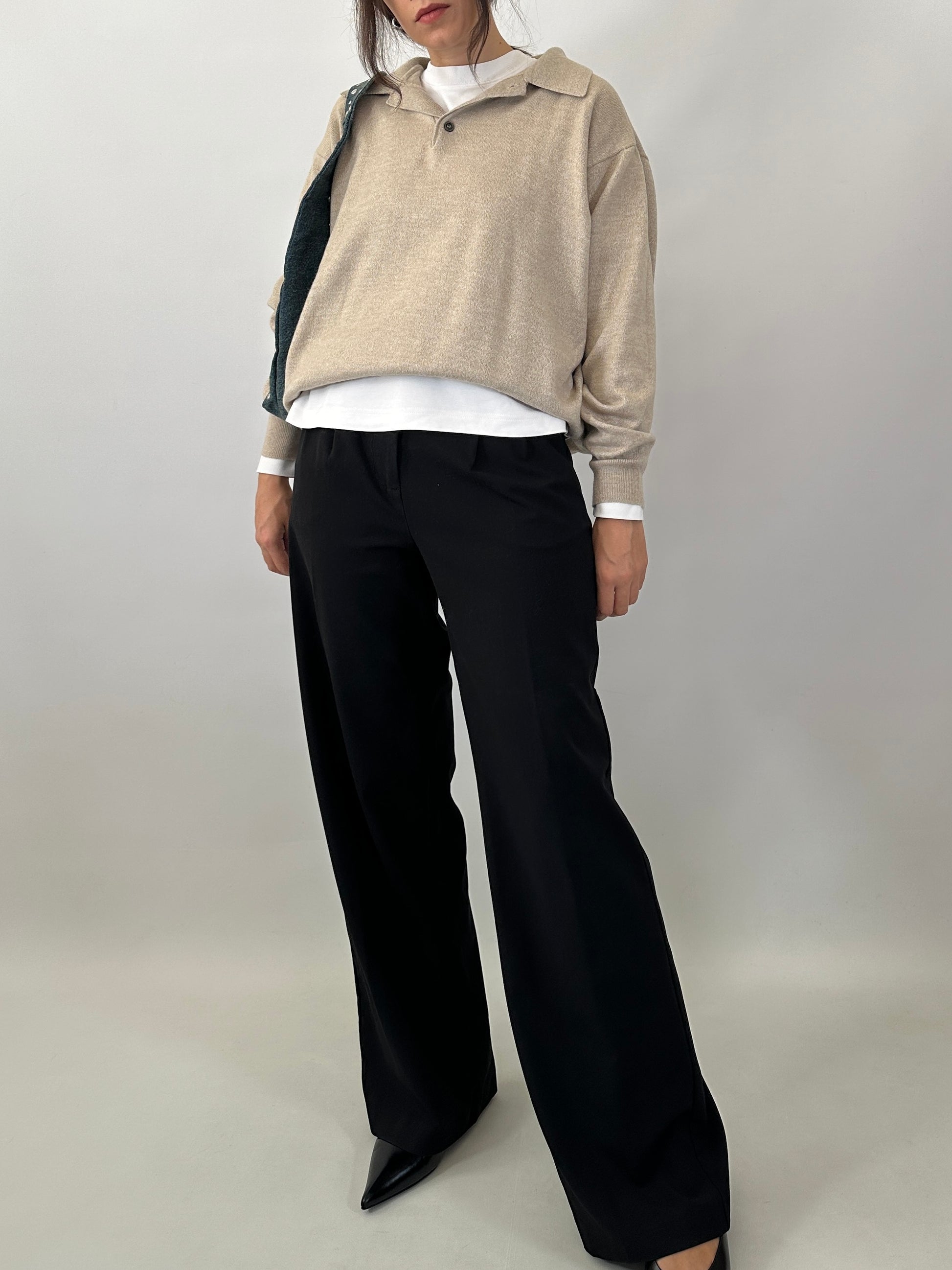 Maglione vintage con colletto aperto tipo polo con chiusura a tre bottoni e vestibilità rilassata.