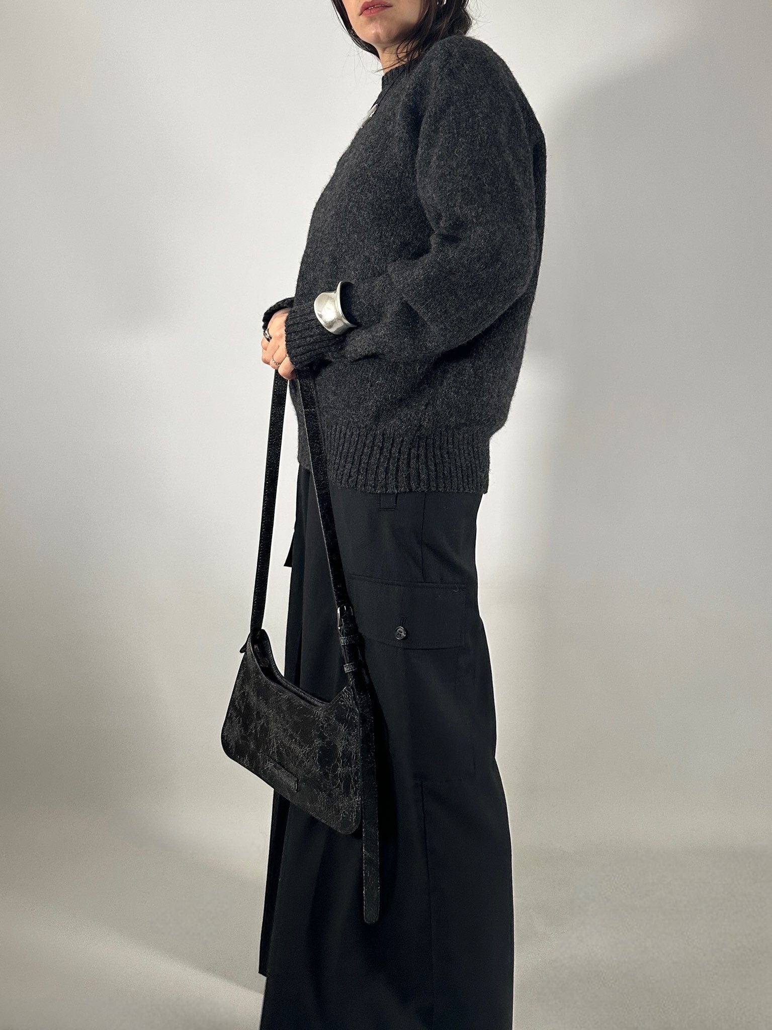 Styling tips: Perfetto con pantaloni sartoriali, denim dritti o gonne midi per un look essenziale e bilanciato. La texture della lana cardata aggiunge carattere anche ai look più minimal, risultando ideale per layering puliti con camicie o giacche strutturate. Funziona sia indossato dentro pantaloni a vita alta per definire la figura, sia portato morbido per un effetto più rilassato e contemporaneo.