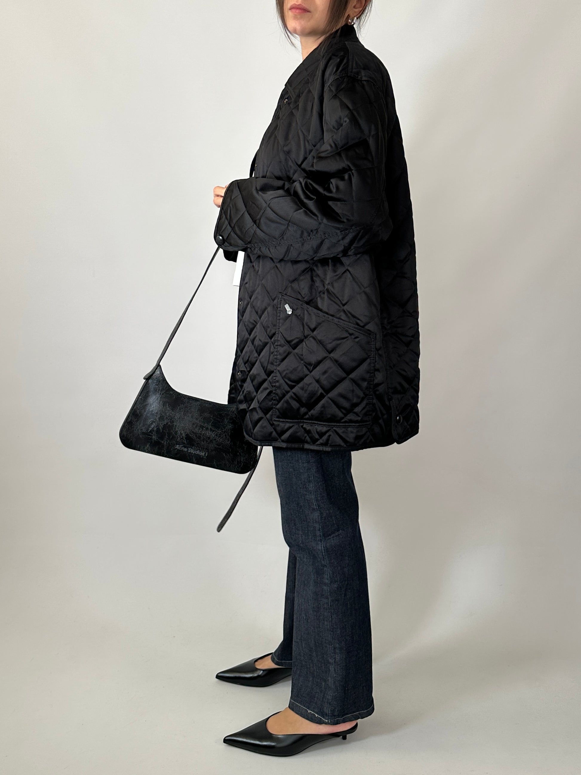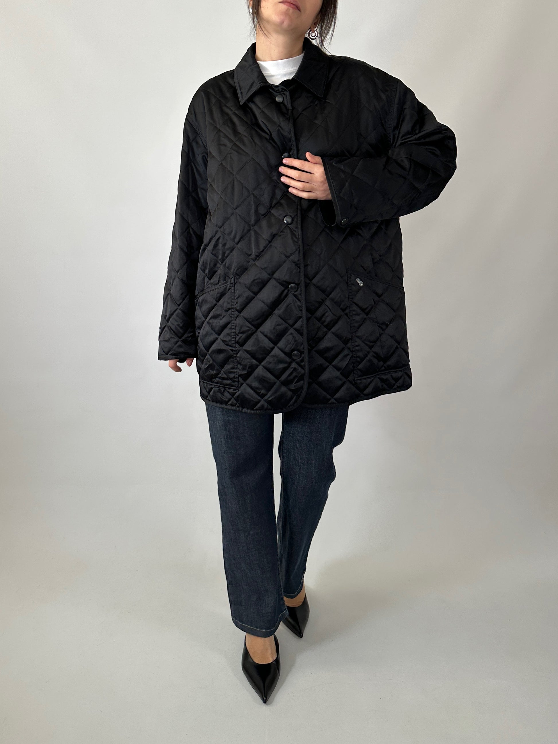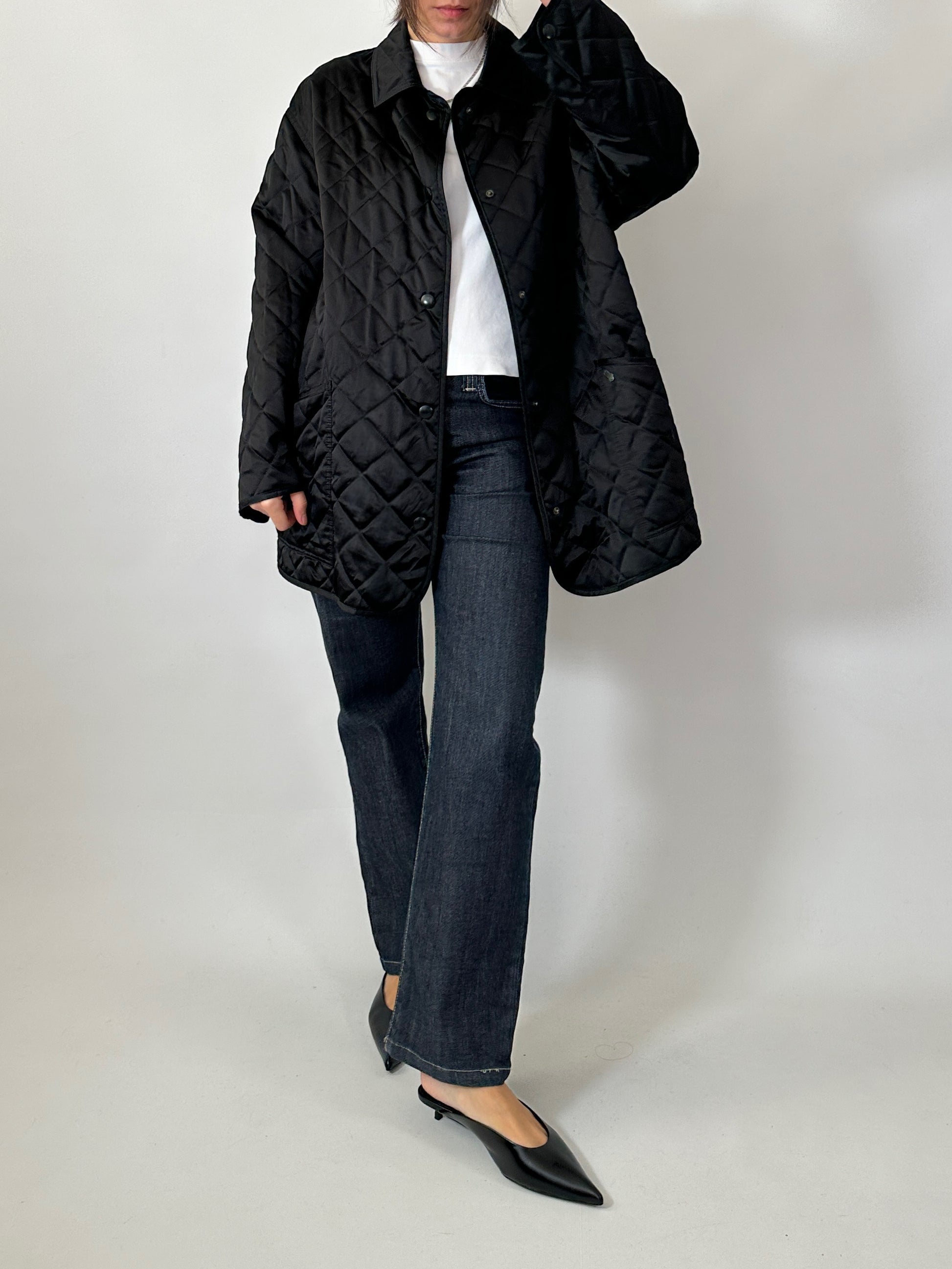 Giacca trapuntata a rombi in raso nero, il perfetto capo di transizione.