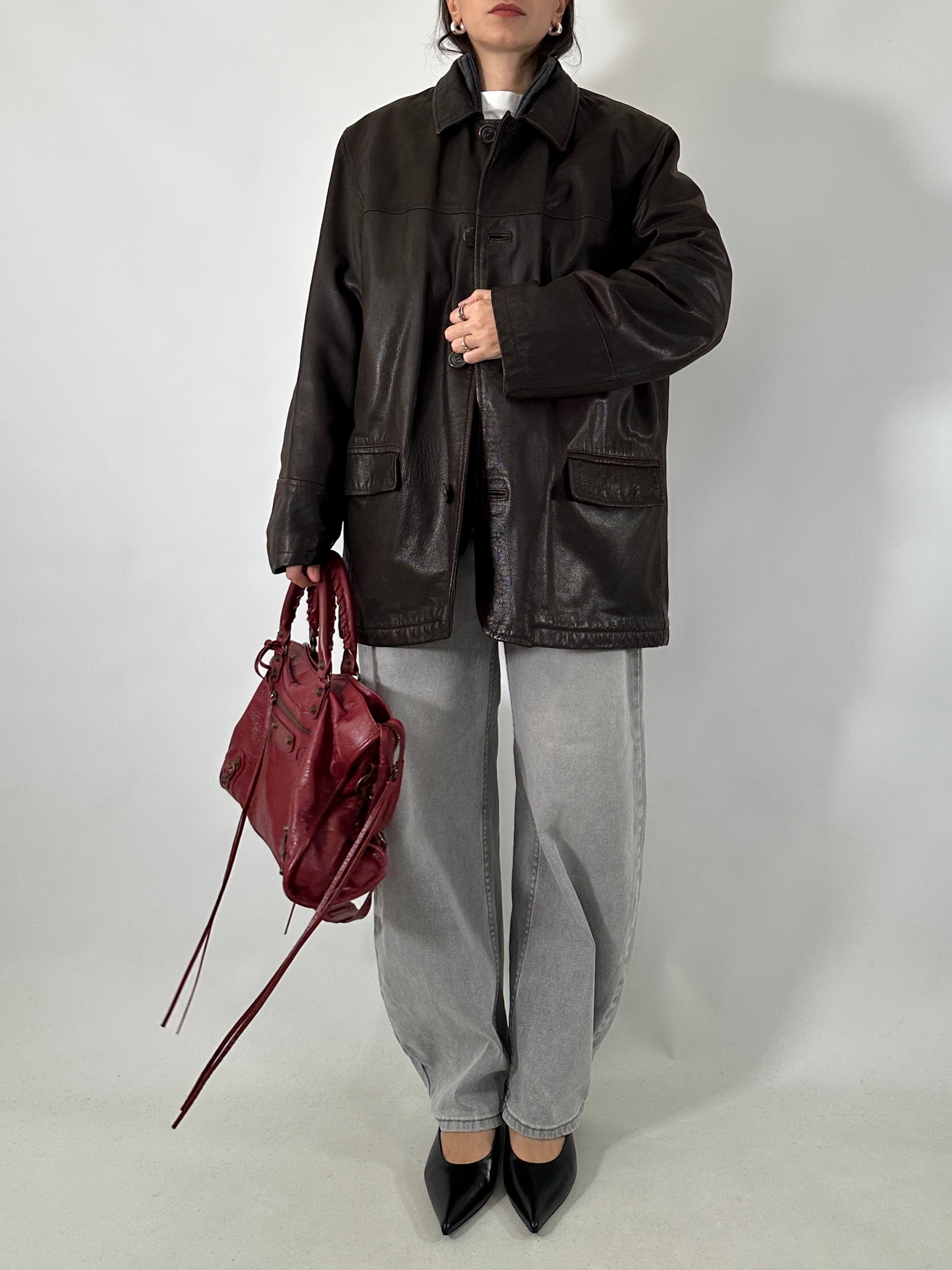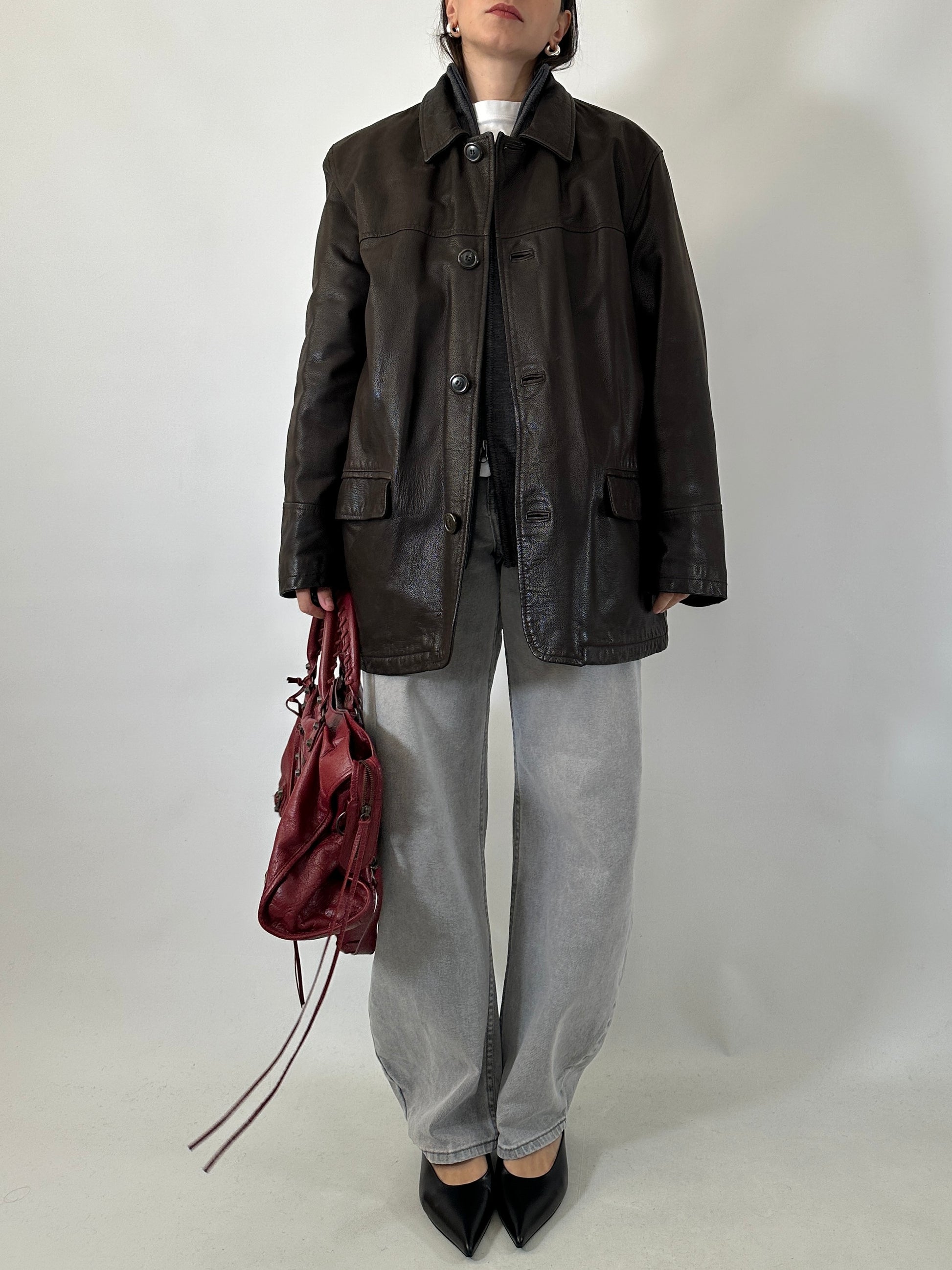 Styling tips: Perfetta con denim chiaro e stivali a punta per un look minimal ’90s. Da abbinare anche a pantaloni sartoriali e knitwear grigio o nero per un’estetica più raffinata. Il volume leggermente oversize la rende ideale per creare layering strutturati.