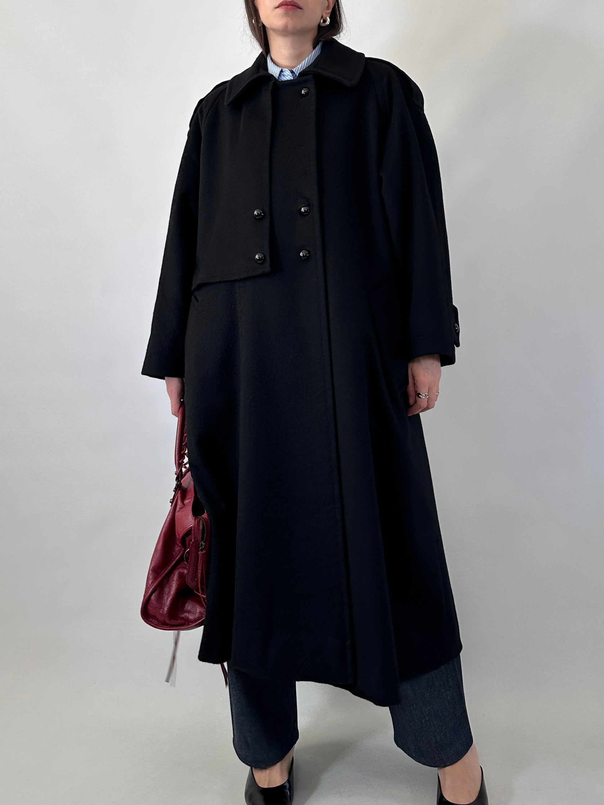 Vintage black wool coat with cape detail
