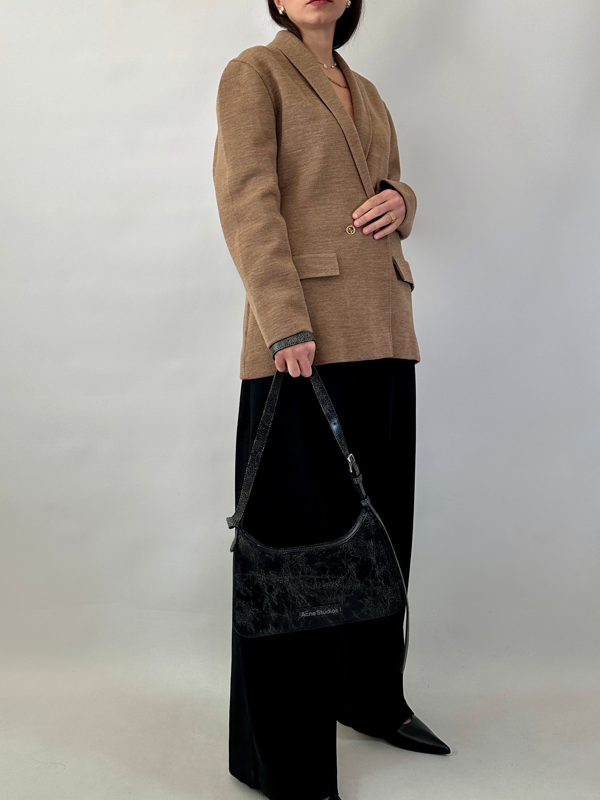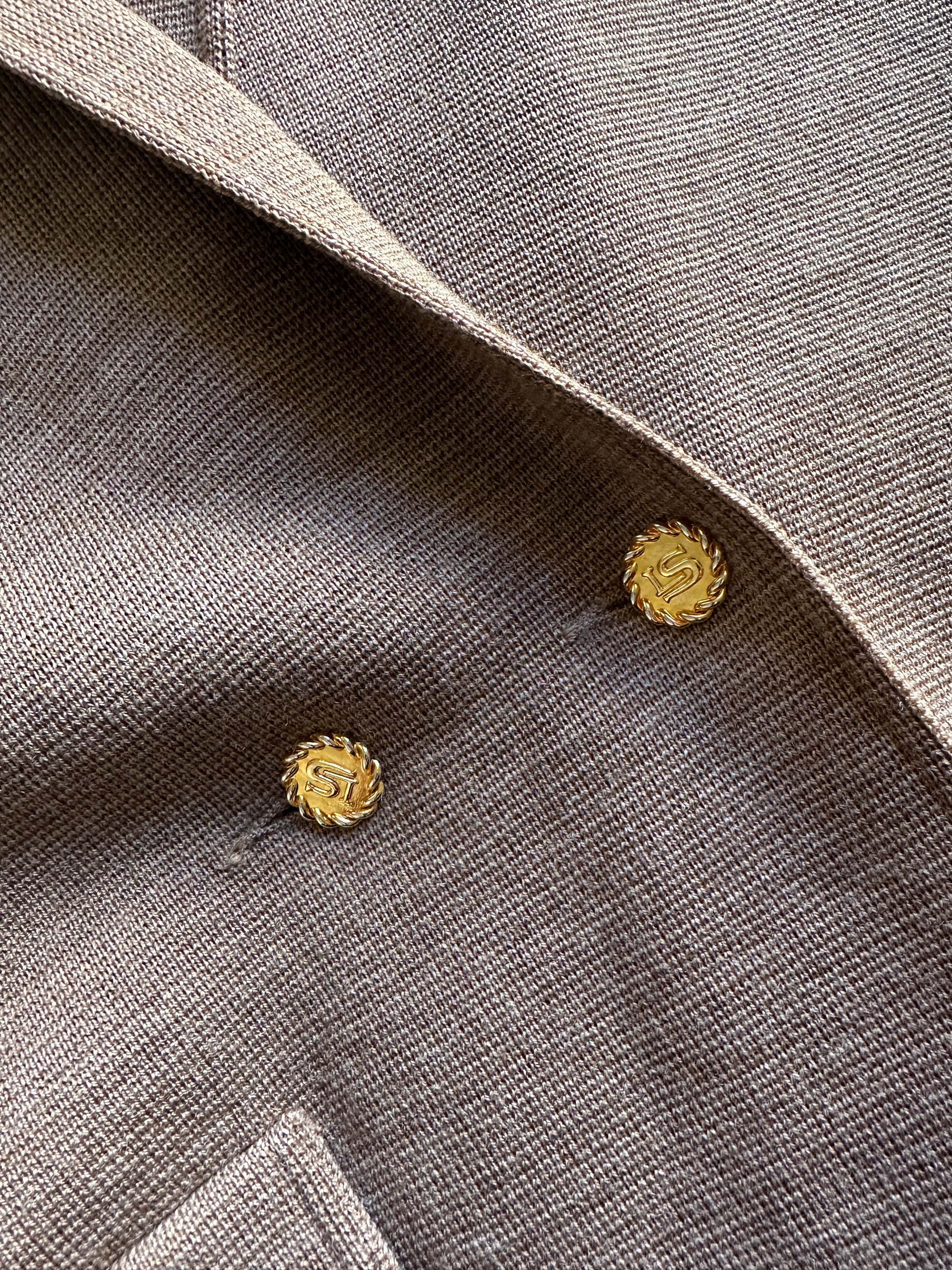 Rever a scialle, doppiopetto con due bottoni dorati, leggermente affiancato, sfoderato.
