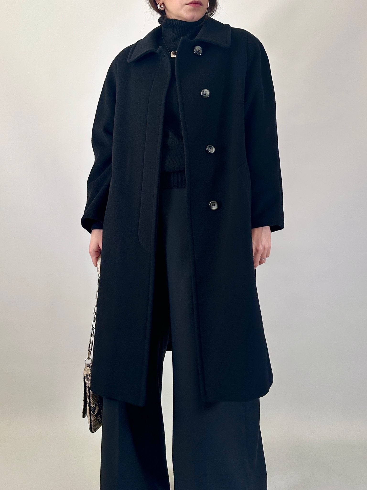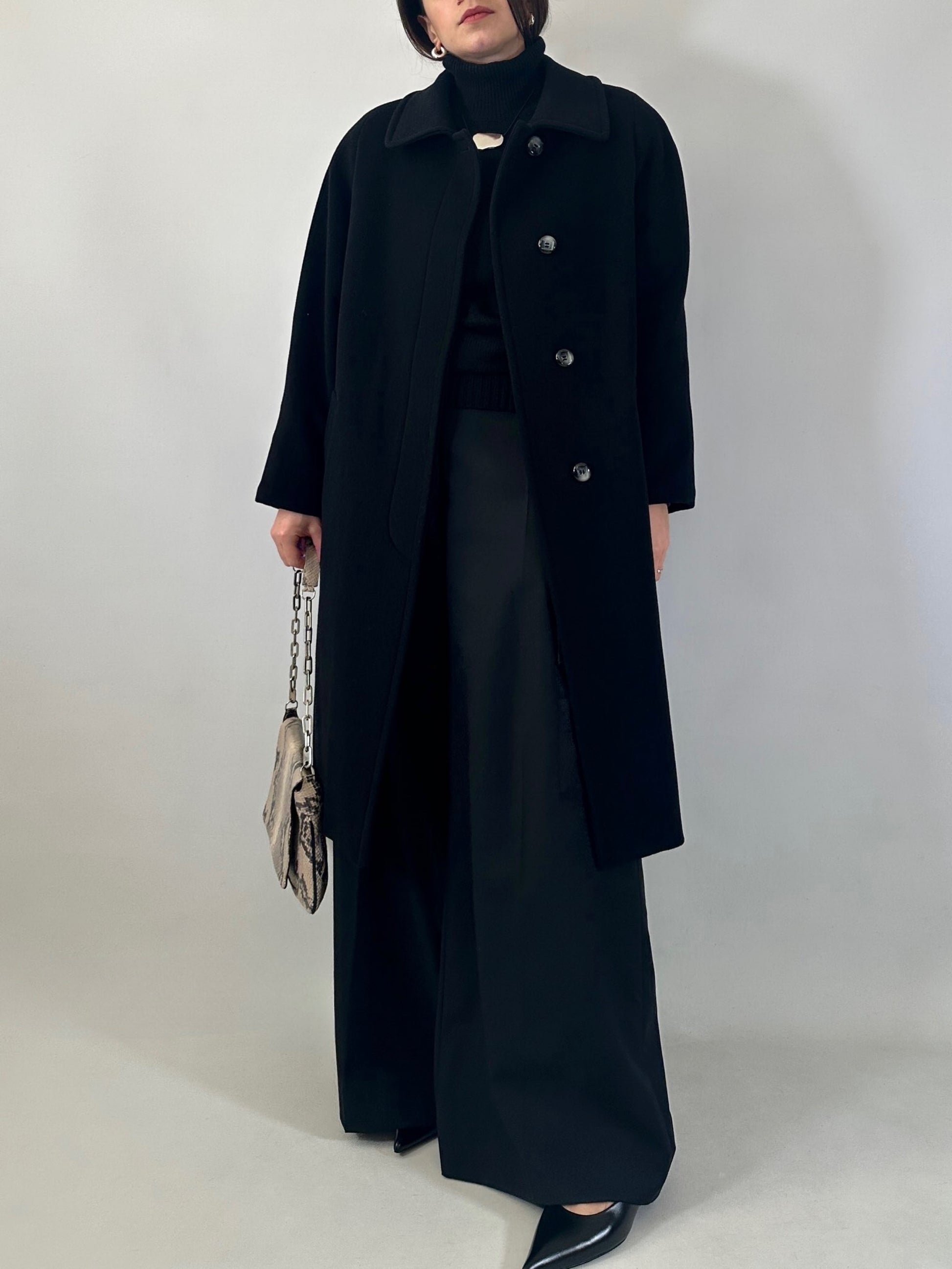 Cappotto vintage Made in Italy in misto lana, cashmere e angora, dalla linea essenziale e pulita.